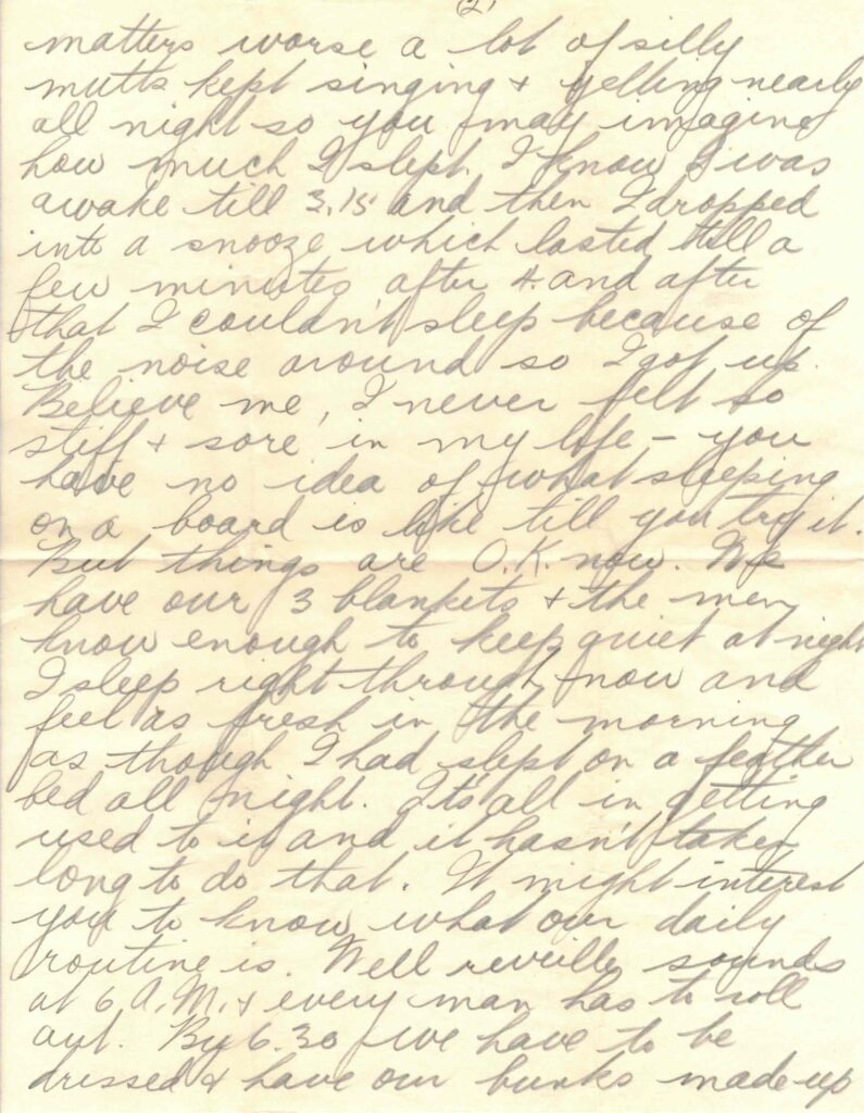 It seems rather funny to be writing letters in a lead pencil, but that’s what I have to do now because I can’t keep ink down here for fear of getting it spilt all over my belongings.