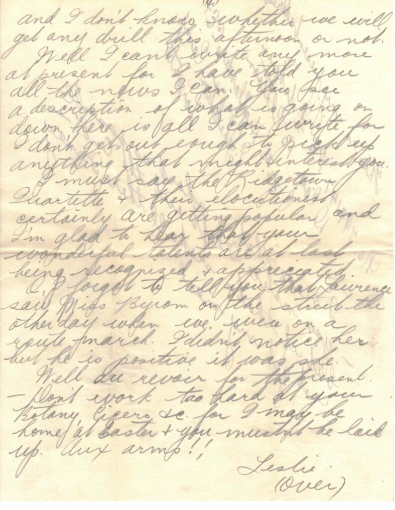 I forgot to tell you that Lawrence saw Miss Byron on the street the other day when we were on a route march. I didn’t notice her but he is positive it was she.