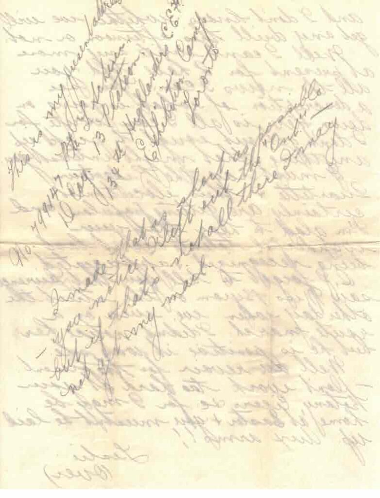 Well I can’t write any more at present for I have told you all the news I can. You see a description of what is going on down there is all I can write for I don’t get out enough to pick up anything that might interest you.