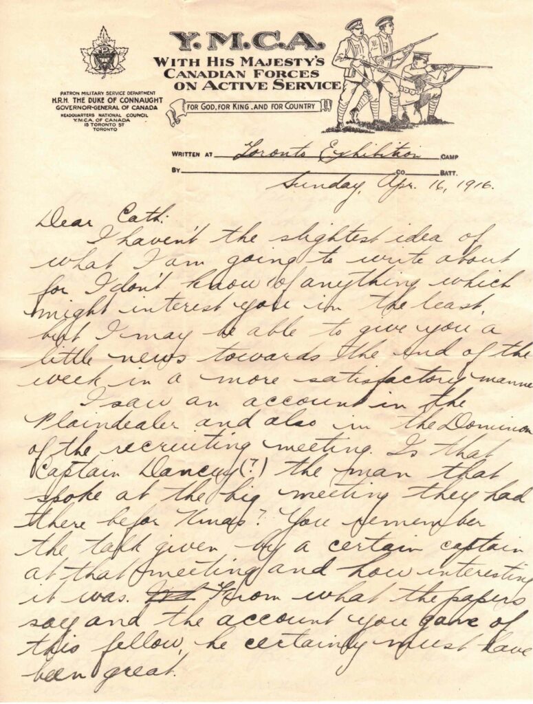I saw an account in the Plaindealer and also in the Dominion of the recruiting meeting. Is that Captain Dancey(?) the man that spoke at the big meeting they had there before Xmas? You remember the talk given by a certain captain at that meeting and how interesting it was. From what the papers say and the account you gave of this fellow, he certainly must have been great.