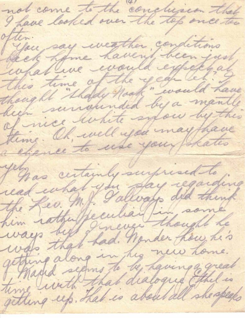 You say weather conditions back home haven’t been just what we would expect at this time of the year eh? I thought “Shady Nook” would have been surrounded by a mantle of nice white snow by this time. Oh, well you may have a chance to use your skates yet.