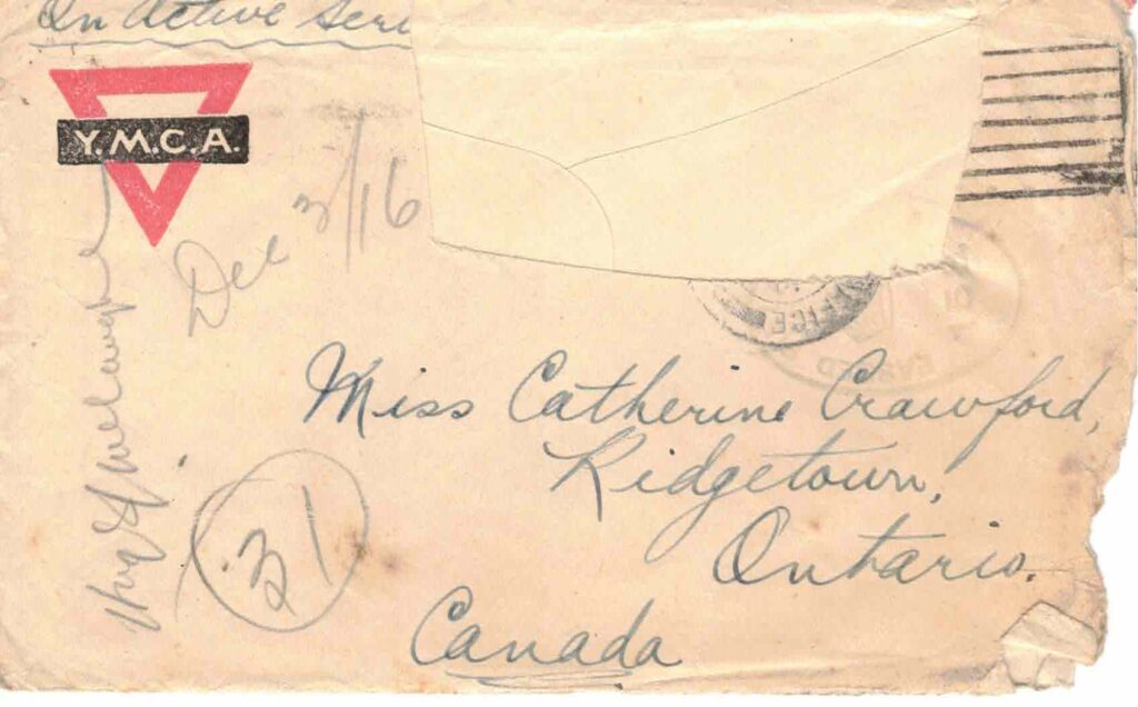 Thanks very much (in advance) for the parcel you are sending. I am certainly going to be well fixed if all my parcels reach me & I think they will for our mail is coming quite regularly now that our new add. has been fixed. I rec’d a couple of boxes from the I.O.D.E. last time we were in the line & they arrived in 1st class condition. I couldn’t help laughing when I opened the latter though and saw a nice black plug of stag chewing tobacco. You remember the last night we were at the Eau & Helen wanted to know if I chewed? Ha! Ha! Well I’ve just as much use for it now as I had then so I cut the plug in two & gave it to two of the boys who weren’t so particular about what they put in their mouths.
